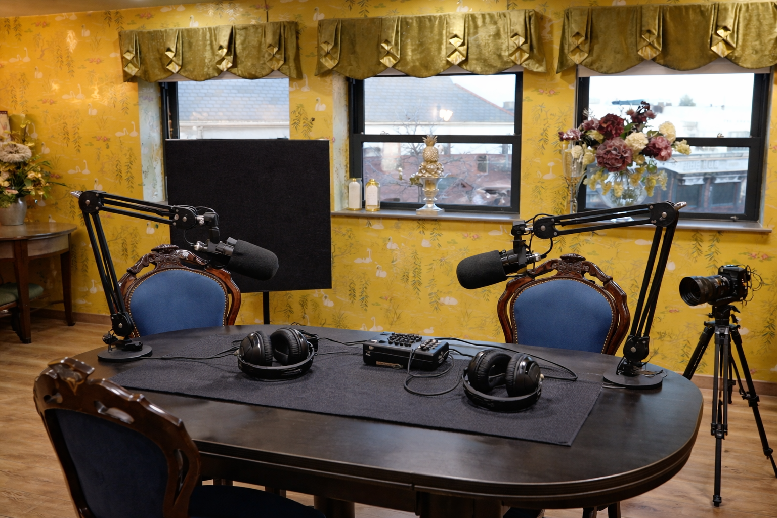 The Lisle Room provides all essential podcast equipment, including professional microphones, headphones, pop filters, and a simple two-microphone setup for interviews or co-hosted episodes. Recording is captured directly to your own laptop or device, ensuring full control of your content.